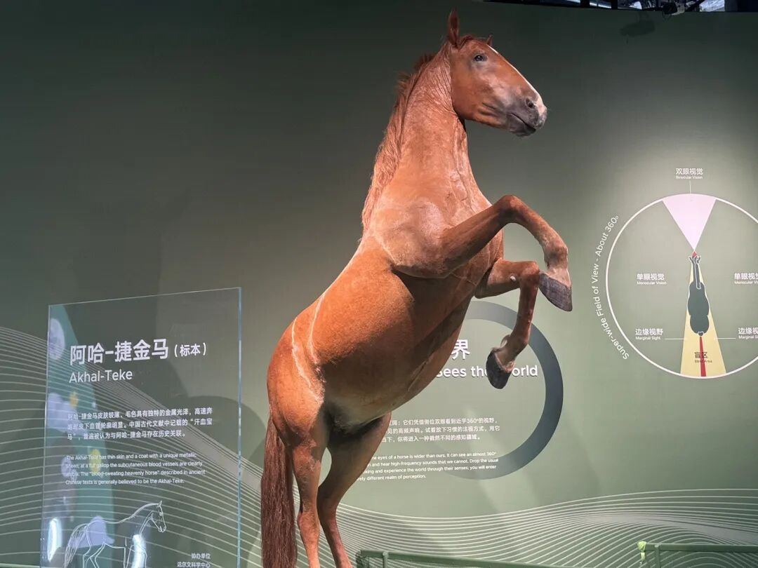 本次特展以“马”为叙事轴心,换以博物学的视角重新欣赏马,打破了科技与文化、历史与当下的边界,创新融合文物、标本、数字艺术与互动手段,构建起一个贯通自然进化、人类文明与情感共鸣,可看、可玩、可学、可感的现代沉浸式马主题体验空间。