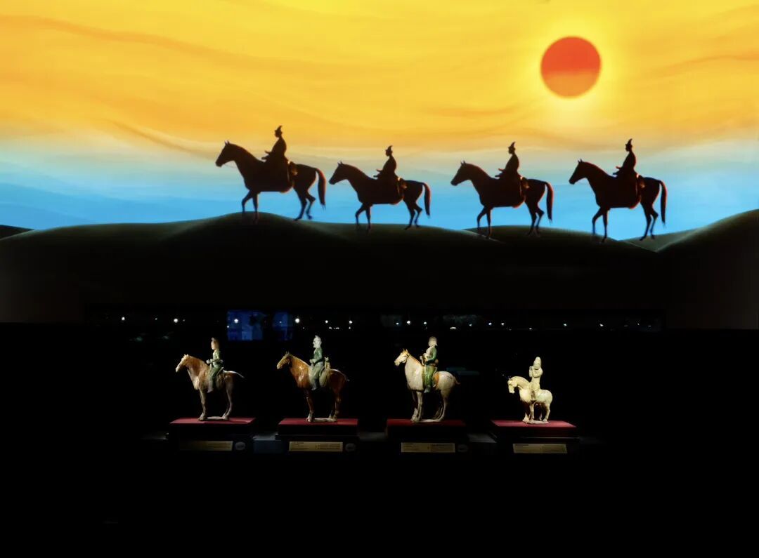 展品中,有用于皇家诏令传达的铜“圣旨”合符,也有体现民族交融的三彩胡人骑马狩猎俑,这些内容展现的不只是马的功能转变,更是马与人类命运共同体的深层联系。