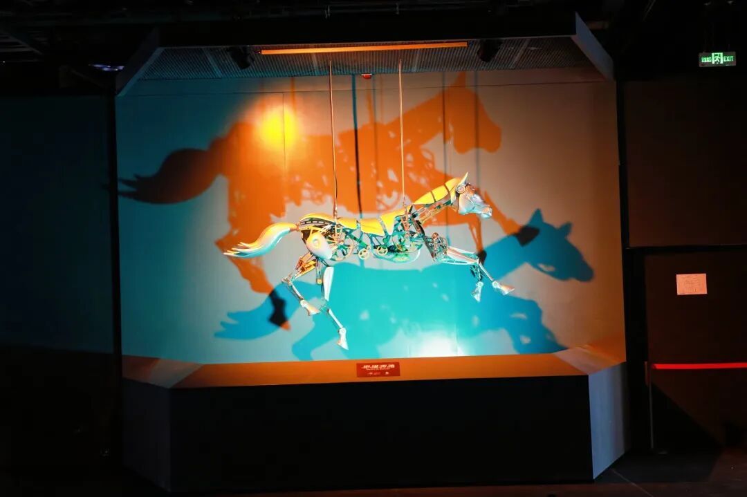 机械马在半空中“奔腾”,它集合多项尖端仿真技术,内部由超过500个精密金属构件组成,复现了马最优雅的骨骼结构与肌肉线条,关键结构件采用工业级3D打印一体成型,以确保复杂形态的强度与动作精度。