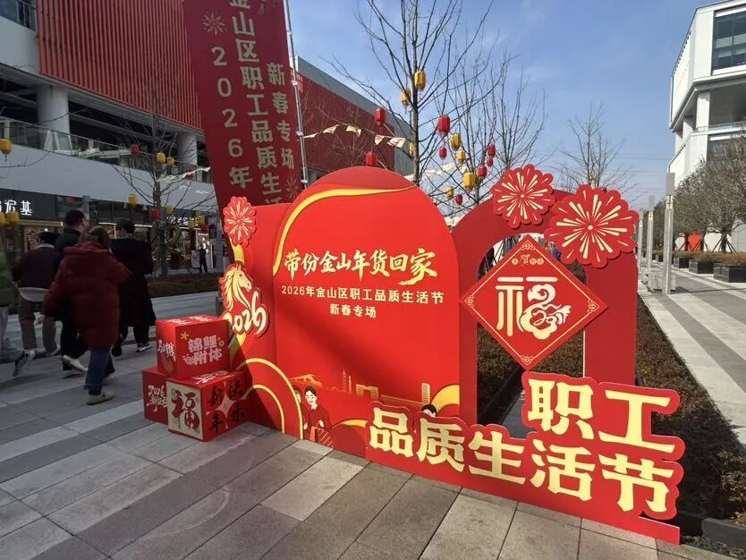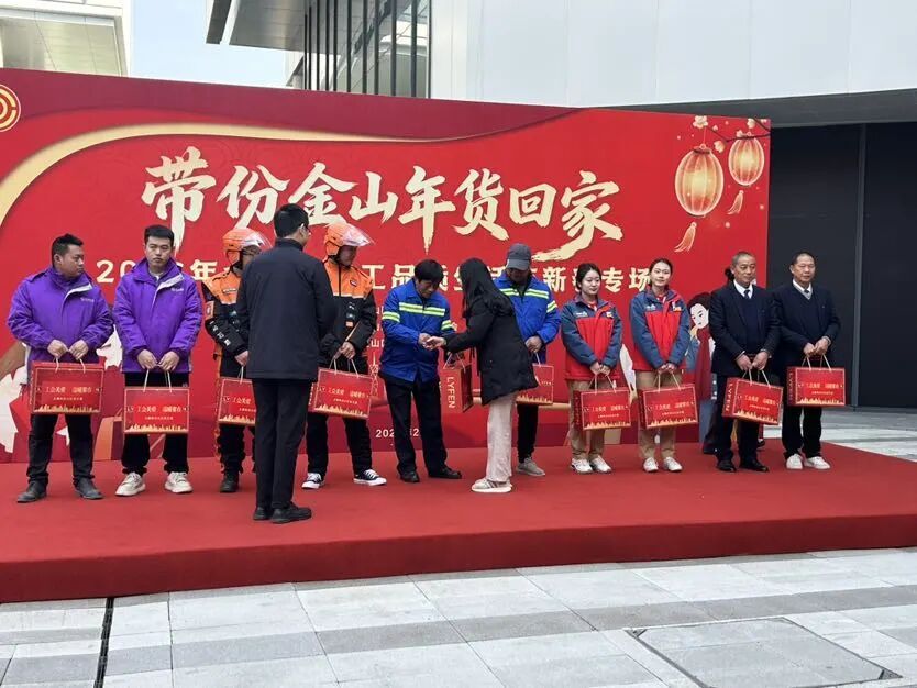 活动现场,一排排摊位前汇聚了金山本土优质农产品、老字号特产、特色伴手礼及知名品牌实惠商品,从新鲜果蔬到非遗文创等,种类丰富,满足职工年货采购需求。