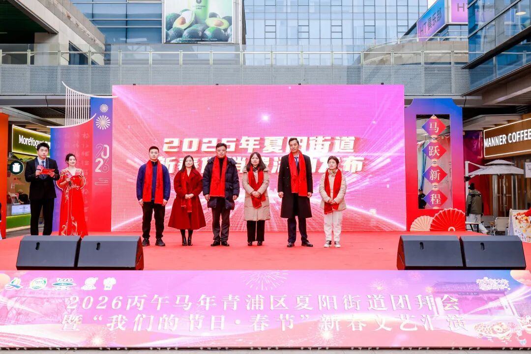 现场发布了2026年夏阳街道新春促消费活动,推出舌尖年味·食惠专场、新春焕物·好物专场等四大特色专场,为居民送上满满的新春消费福利。 现场发布的2026年上半年夏阳街道“六业”融合新项目、新产品及新活动,锚定农文旅商体展“六业”融合发展方向,推出三六五婚庆综合体项目、上海联怡枇杷乐园提升项目、“三尺花园”模块化智能水培植物装置产品园区场景融合展示项目、彰显“瘦身鱼”、 “新兴向阳,微愿生长”公益系列活动、“向阳同行”党群赋能行动、“星夜追光跑·悦跑夏阳”系列活动、“青溪视界·镜显华章”奋进青浦主题摄影暨青浦区摄影家协会四十周年庆展活动八项新项目、新产品及新活动,为夏阳街道新一年的高质量发展注入强大动力。 本次文艺汇演以“龙马新岁·春满夏阳”“暖韵民生·乐聚夏阳”“新程再启·筑梦夏阳”三个篇章层层递进,歌舞、朗诵、情景剧等多元节目轮番登场,扎根团圆底色,展现夏阳风貌,传递奋进力量。这不仅是一场全民共享、暖意融融的新春盛会,更是夏阳街道深化精神文明建设、推动农文旅商体展“六业”融合发展的生动实践。 活动现场还打造了沉浸式新春互动场景,马年定制拍照框、非遗手作摊位吸引市民争相参与,年货展销区同步发放文明过节倡议书,让传统年味与文明新风双向奔赴,让新春佳节既有“烟火气”,更有“文明味”。