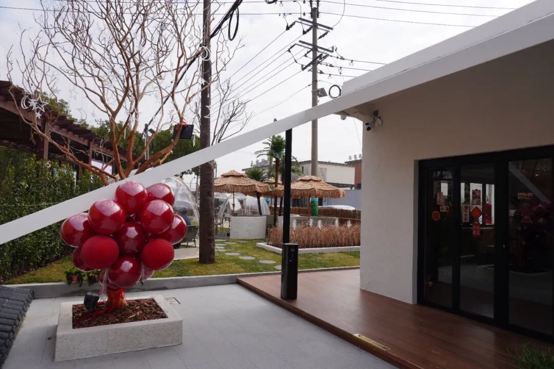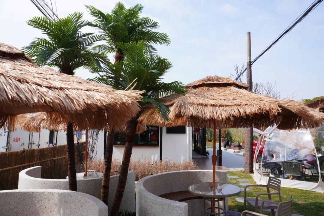 室外的空间更加广阔,帐篷换上了稻草外衣,高大的棕榈树矗立在旁,仿佛真的置身于三亚的海边,连拂面的微风都变得咸咸的。