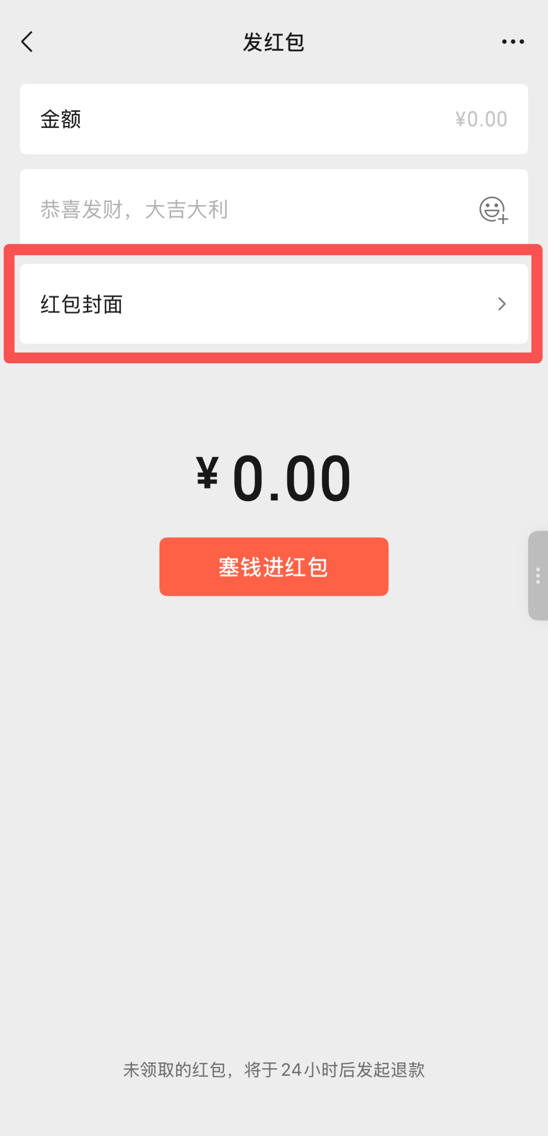 在发红包页面选择“红包封面”