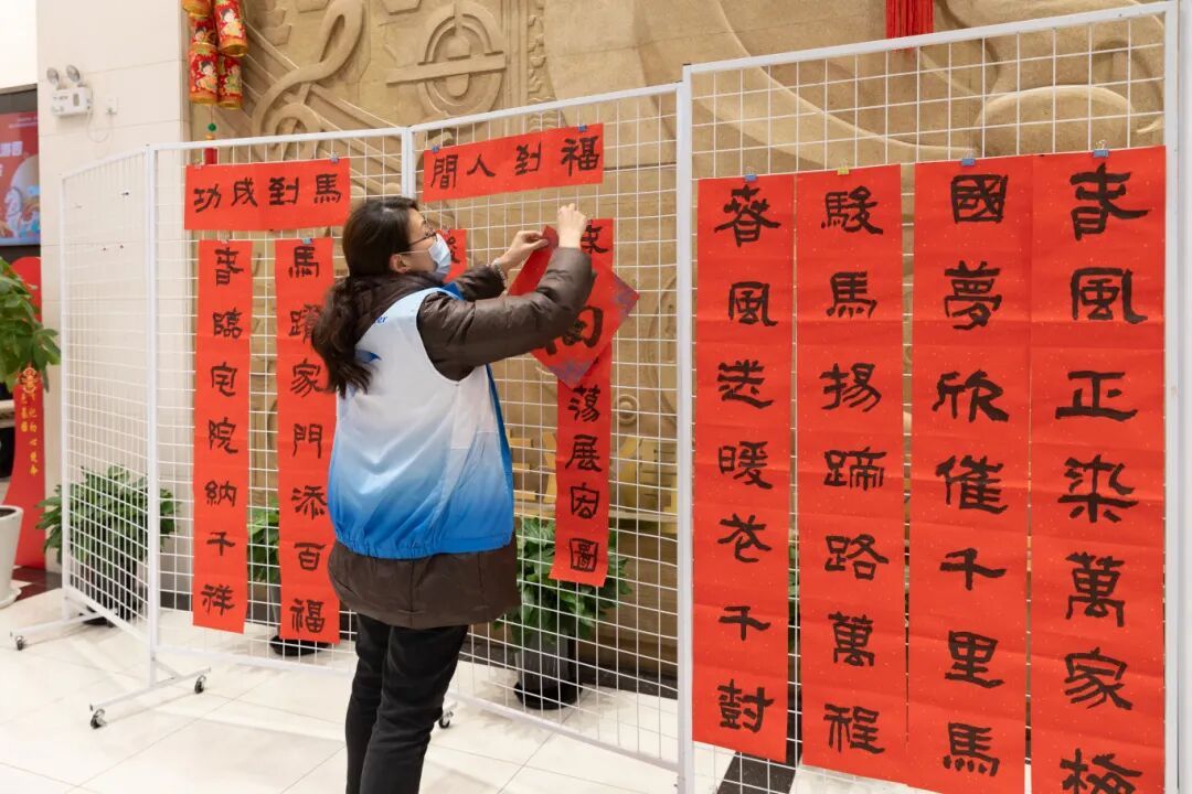 在“马上有福”送福区,六位社区书法爱好者现场挥毫泼墨,书写春联和“福”字,供居民免费领取。居民们挑选心仪的春联与“福”字,定格新春美好瞬间,感受传统文化带来的年味。