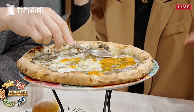 据门店经理介绍,黑松露温泉蛋披萨在上海排名前列,这款披萨由意大利南部和北部结合制作而成,用少量酵母长时间发酵,更适用于食客的味蕾。