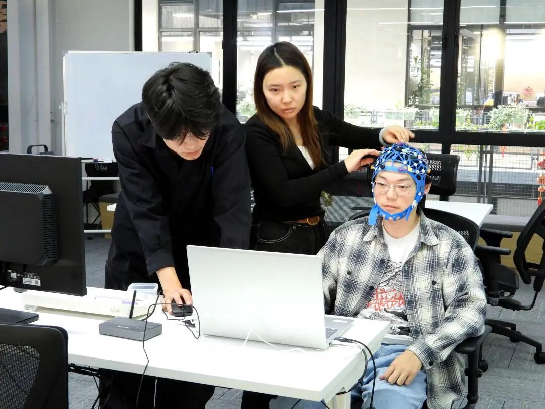 通过先进的AI算法与模型,潜脑科技已能在特定应用场景下精准捕捉脑电信号的变化并支持部分脑疾病的诊断。采访现场,潜脑科技的员工展示了最新产品是如何通过脑电帽采集脑电波,并进行相关分析。