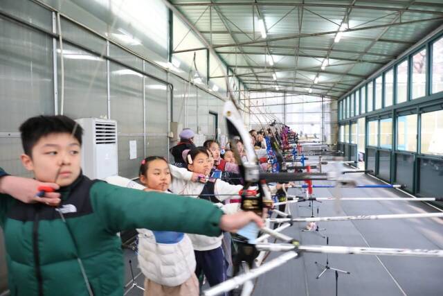 射箭:弓如满月,箭指靶心,静气凝神间,尽显少年锋芒。射箭场上,选手们屏气凝神、姿态沉稳,在呼吸与发力的精准配合中,追求“稳、准、狠”的极致境界,这不仅是技术的较量,更是心理素质的比拼,是耐心与毅力的双重磨砺。
