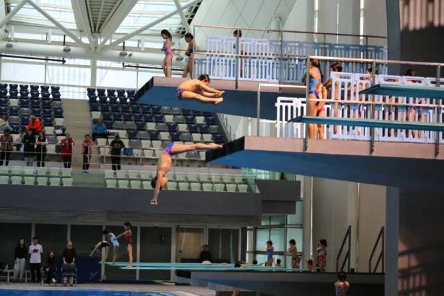跳水:跳台上,小将们褪去稚气、眼神坚定,重复着助跑、起跳、翻转、入水的每一个动作,从1米板的稳健试水,到3米板的从容腾空,再到5米台的勇敢挑战,在水花飞溅间突破自我,只为在市运赛场绽放最耀眼的光芒。