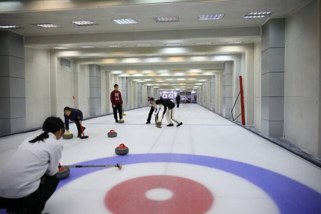 冰壶:冰面之上,寒意与热血碰撞。队员们身着专业装备,身姿挺拔、神情专注,平稳推动冰壶滑行,毛刷与冰面摩擦发出清脆声响,精准把控力度与方向,在团队协作中推演战术、默契配合。