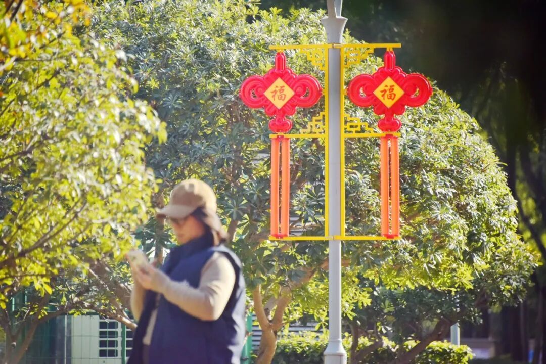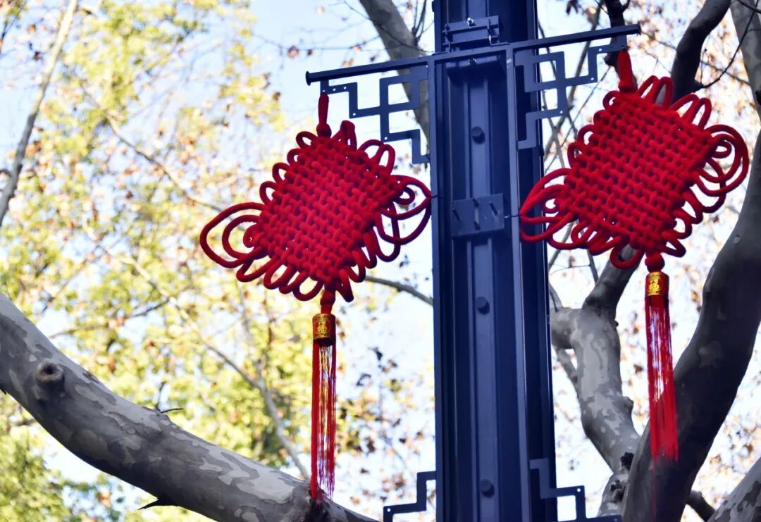区文明办携手区绿化市容局等部门陆续对多条路段进行装扮,用中国结、红灯笼等具有中国特色的装饰,为街区增添一抹中国红。