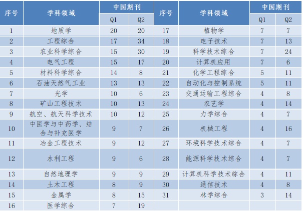 优势学科亮点凸显,多领域发展成效斐然。《WJCI报告》2025版收录中国科技期刊在地质学、工程综合等31个学科表现突出,排名进入前50%的期刊均在10种以上,表明在这些学科领域我国科技期刊发展相对较好、优势显著。