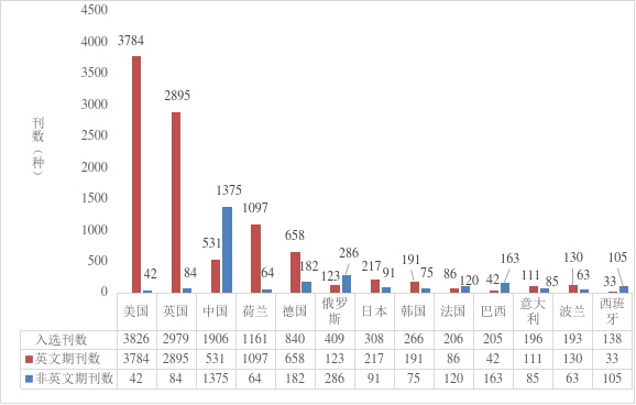 图1《WJCI报告》2025版收录各国英文期刊与非英文期刊数量