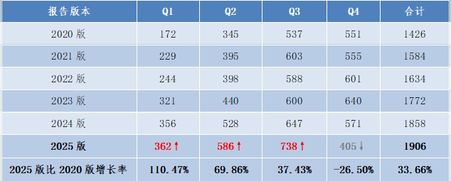 期刊量质齐升,国际传播效能稳步增强。在数量方面,《WJCI报告》收录优秀的中国科技期刊数量逐年递增。2025版收录中国科技期刊1906种,比2024版增加了48种,比2020版增加了480种。
