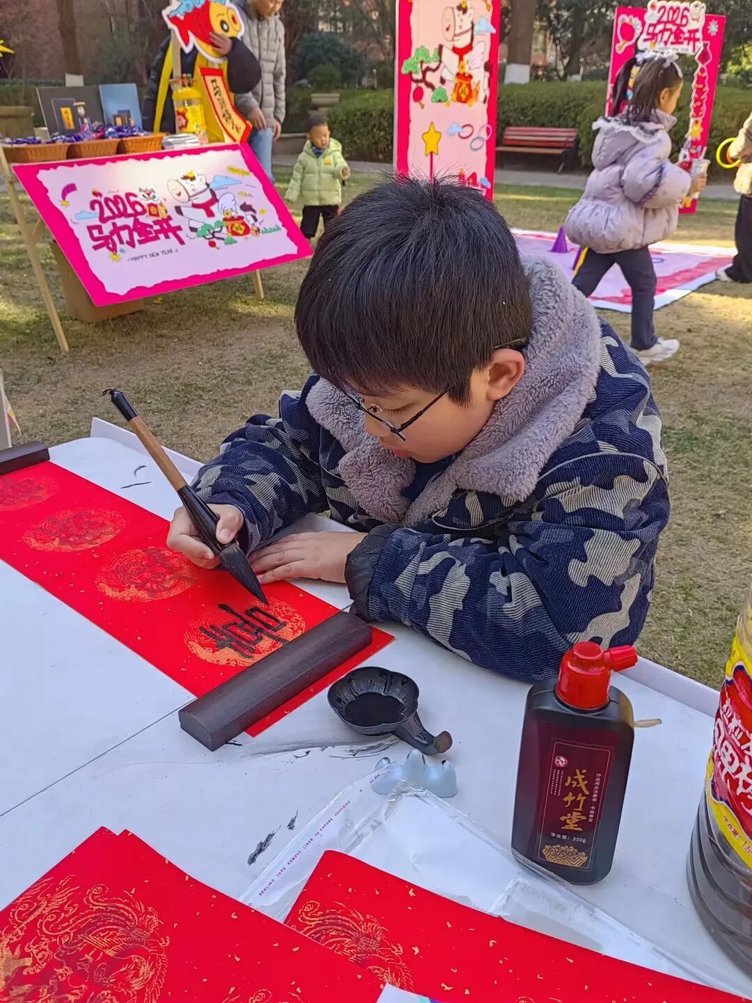 稚子挥毫写福联