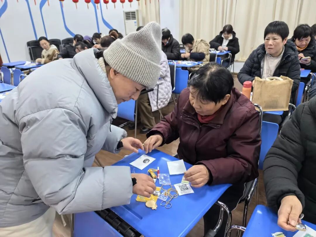 新春启幕时,非遗焕新生。在共泰为民服务活动中心内,一场“非遗润新春 社区绽芳华”宋锦挂件制作活动温暖启幕。居民围坐在一起,细细触摸有着“锦绣之冠”雅称的宋锦,感受传统文化的魅力。制作环节中,专业老师以实物为媒,揭开宋锦“经纬交织、色彩斑斓”的奥秘,从剪裁锦片到粘贴定型,每一步都示范得细致入微。居民们或低头比对纹样,或剪刀轻旋裁出福袋轮廓,或互相探讨“小马挂件”的吉祥寓意。欢声笑语中,一枚枚承载着“福气满满”“马到成功”的宋锦挂件渐次成型,每一道折痕都饱含对新春的美好期许。这场“可感知、可体验、可带走”的非遗盛宴,不仅让古老技艺走出博物馆,更让邻里情谊在互动中升温。