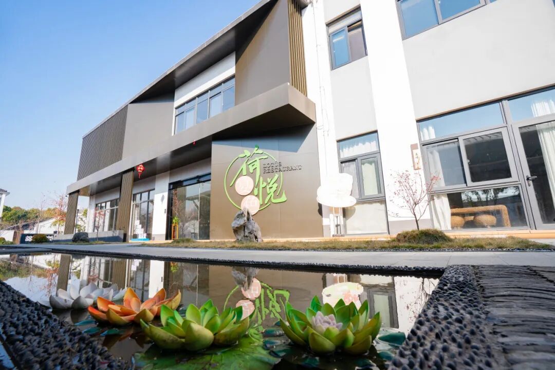 以“荷”为核心,该村不断延伸产业链:引入“为荷而来”企业,开发荷叶茶、荷花咖啡、莲子羹、荷花酥等文创与农旅产品;乡村会客厅集中展销荷系列产品与本地农副产品,依托“共富工坊”吸纳村民就近就业;荷花园旁的“荷宴悦色”餐厅推出本地特色菜肴,配套茶咖、研学、民宿等业态,形成“可赏、可品、可食、可宿、可带走”的乡村旅游体验。