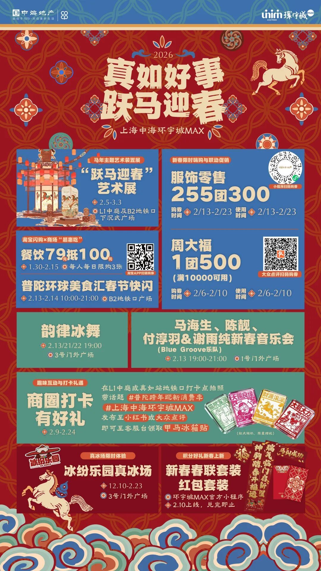 上海真如环宇城MAX以“真如好事,跃马迎春”为主题,将艺术展览与超值团购相结合,为消费者带来一场高品质的新春消费体验。在美食方面,即日起至2月15日,餐饮推出79元抵100元的“超惠吃”活动,每人每日限购3张;2月13日至23日,服饰零售推出255元团300元券。