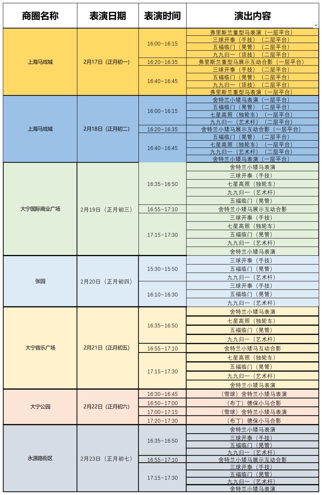 商圈春节演艺快闪活动排演表↓