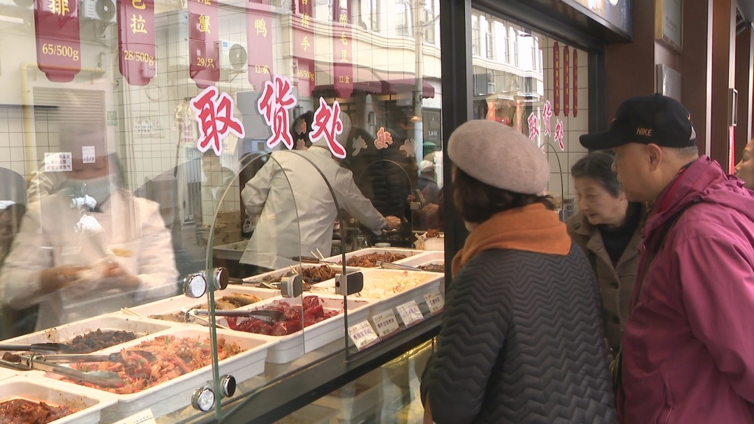 一些上海爷叔点上一瓶黄酒,再点上一盘白斩鸡,喝上一口,十分惬意。“我吃了快50年了,就是喜欢这个味道。”“今朝开业,过来捧捧场,弄了一点白斩鸡,还弄了点小老酒咪咪。”“还是老味道,价格也很亲民。”