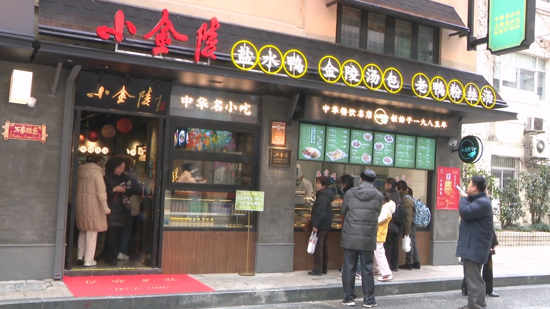 而在小金陵,外卖窗口同样人气颇旺,盐水鸭、鸭胗、鸭掌等都是热门品种。不少老顾客告诉记者:“只要店还存在,我们总归还有地方吃的,因为一直吃这个小金陵盐水鸭,所以特地今天过来,今天开张呀!”