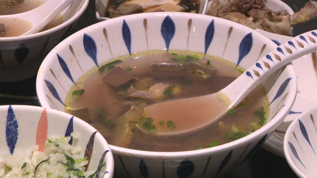 在小绍兴店堂内,点单柜前排起了长队,各个餐桌也是座无虚席,白斩鸡、鸡爪、鸡骨酱面、鸡血汤等都成为不少食客的必点品种。“我们知道这里新开的店,特地从金山过来的。味道与以前云南路总店是一样的,蛮好蛮好。”“这是我们小时候吃的味道,这个鸡骨酱面味道很正宗的,与以前辣酱的味道是一模一样的,相当好。还有鸡鸭血汤也是小时候的感觉,这个白斩鸡还要灵了,小时候一直来吃这个白斩鸡,这个鸡有鲜味,蛮嫩,相当不错。”
