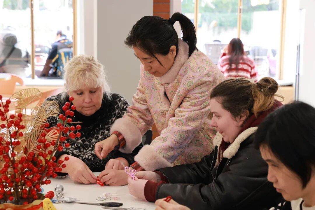 在短短两小时中,来自中国、荷兰、比利时、南非、韩国等国家的三十余位游客,放下手中的旅行攻略,拿起缎带、织锦与丝线,在一缠一绕、一编一织之间,完成了一次充满温度的“中式美学初体验”。