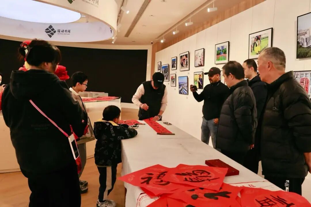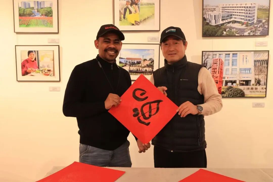 围观市民中,来自苏丹的叶问听得格外专注。已在外冈工作生活一年多的他,一直对中华传统文化充满好奇与热爱。“我十几年前在上海留学的时候,曾短暂接触过一个月书法,所以听说今天有这样一场活动,想着一定要来参加。”叶问也在现场写下一个“福”字,他表示,“虽然文字不同、文化不同,但毛笔写下的祝福是相通的。”