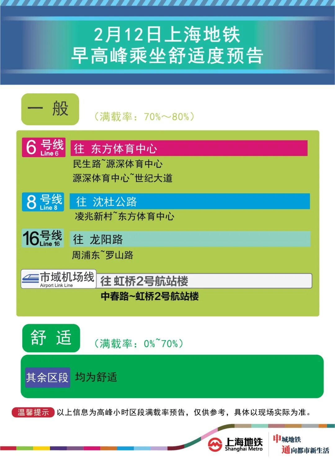 为提升上海地铁早高峰期间出行服务水平,提升乘客乘坐体验,上海地铁向乘客提供乘坐舒适度预告,方便乘客提