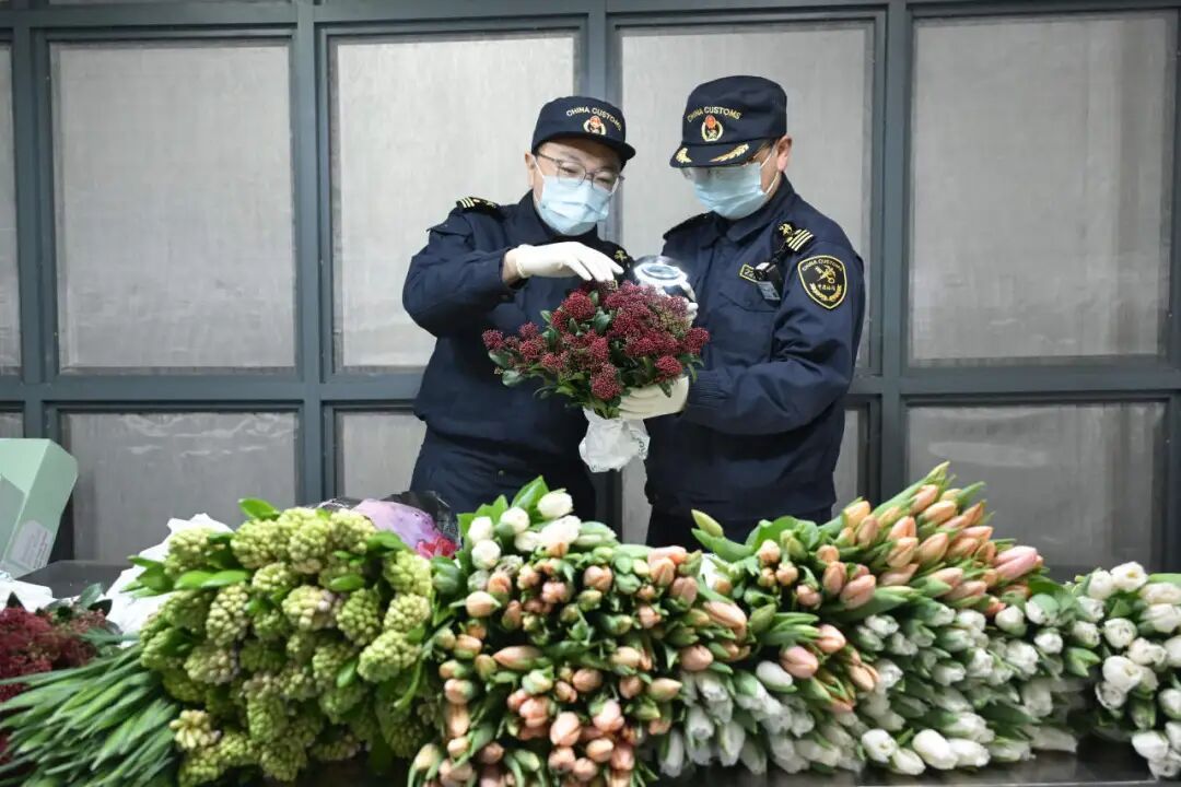 与生鲜食品相比,鲜切花更为娇贵,对温度、时间和运输过程敏感。针对鲜切花保质期短、温控要求高等特点,浦东机场海关优化整合鲜切花监管流程,提供全链条绿色通关服务,叠加“提前申报”“随到随检”等便利化措施,实现优先派单查检、实验室检测和快速验放,确保鲜切花第一时间“保质保鲜” 通关。1月,该关监管进口南非帝王花,新西兰郁金香、木绣球等鲜切花一千余万元。