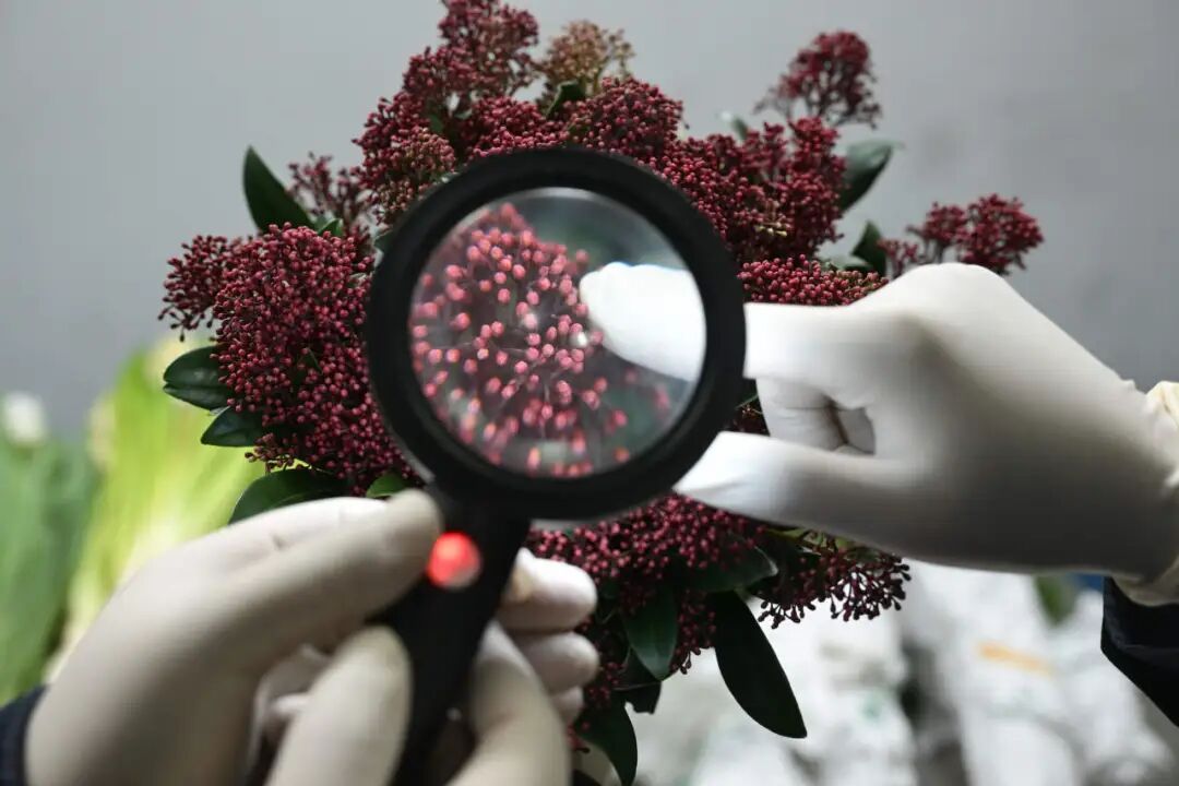 “每逢春节等传统节日,生鲜和鲜花进口量都会激增, 这直接关系到千家万户的节日餐桌和生活仪式感。我们启动节假日高峰保障机制,核心就是让这两类货物既‘通得快’又‘管得好’。生鲜和鲜花享受‘绿色通道’,但该做的检疫查验一步都不能少,这是我们对市民健康和国门生物安全的责任。”浦东机场海关物控查检一处查验五科副科长李青龙表示。