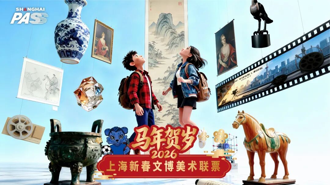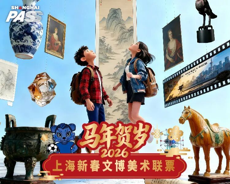 马年新春将至,作为首届“旅超”大赛的重要成果和产品,市文化旅游局(市文物局)联合久事集团旗下交通卡公司精心策划,首次面向市民游客推出马年贺岁“文旅大礼包”—— 2026 Shanghai Pass 上海新春文博美术联票。低至299元的优惠价格,囊括了票面总价值超1100元的上海20余家热门文博美术场馆的入馆门票、热门展票,更有大量优惠权益和商圈礼遇折扣。