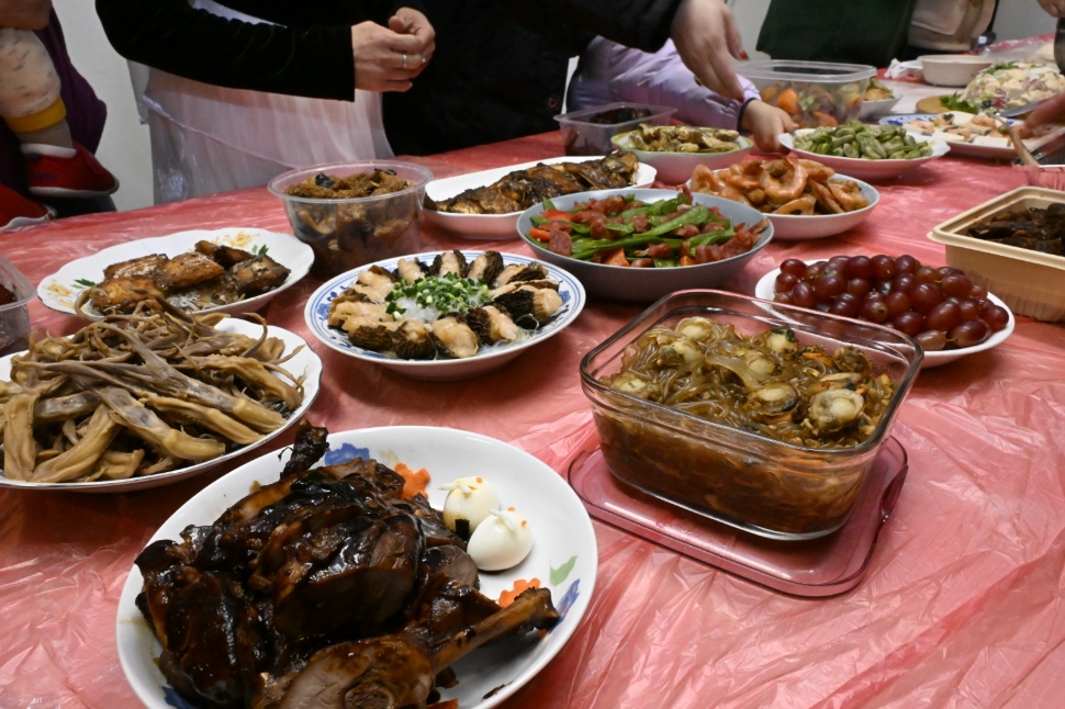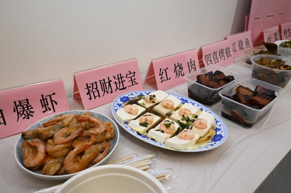 热气腾腾的饺子出锅了,“百家盛宴”长桌上早已摆满琳琅满目的菜肴。油润红亮的红烧肉,金黄酥脆的春卷,软糯香甜的八宝饭……每一道都是居民亲手烹制的拿手菜。