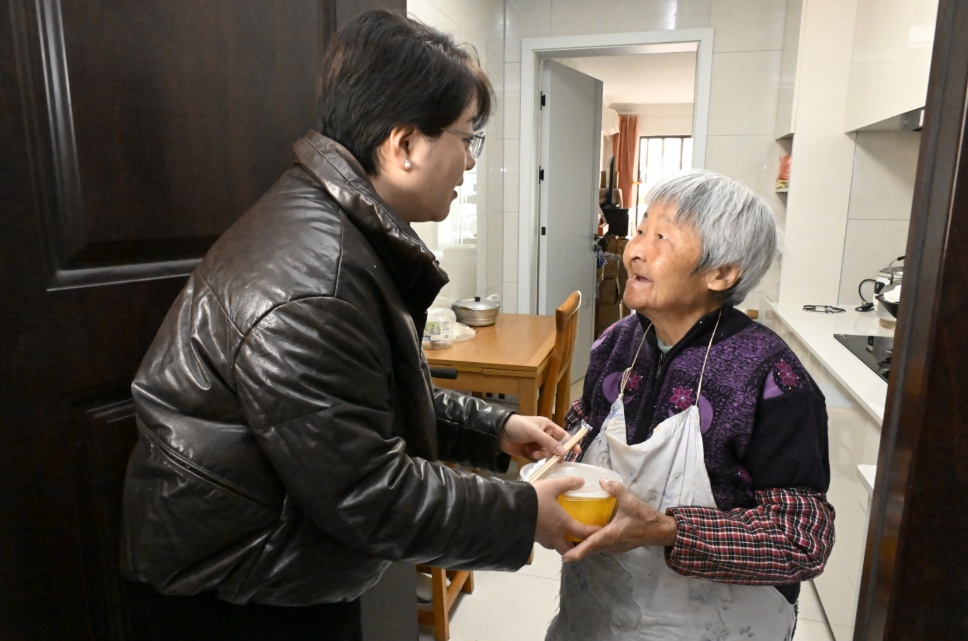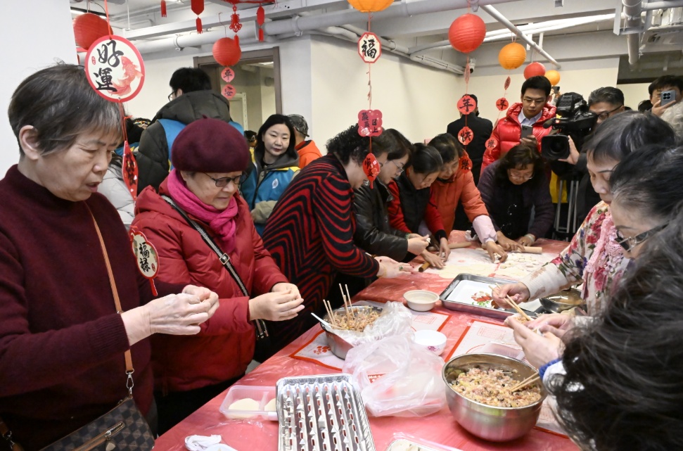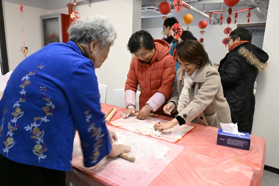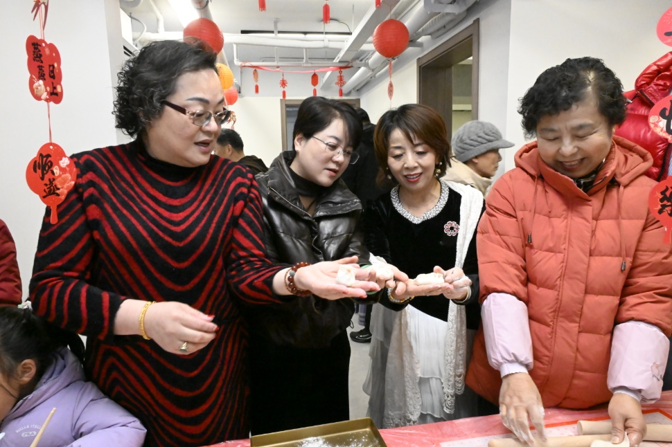 居民们欢聚一堂的同时,党员志愿者把刚出锅的饺子送到了孤老和独居老人家中。“快进来坐,你们太有心了。”83岁的孤老唐德海接过饺子,眼眶泛红,“自从搬进新家,居委会的关心就没断过。今天这碗饺子吃在嘴里,更暖在心里。”志愿者们还陪着老人唠家常,记录下老人的新春心愿,小小的房间里,暖意融融。