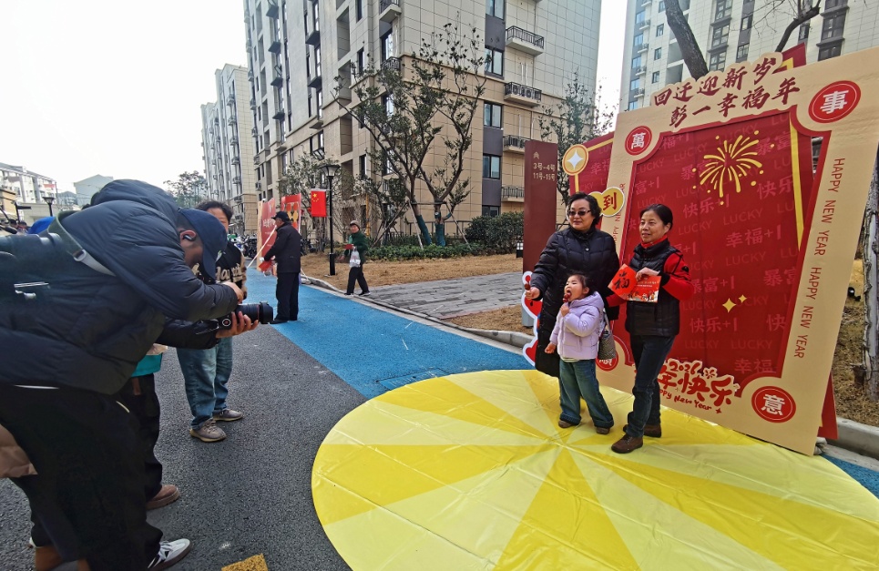 “新居全家福”拍摄点前更是排起长队。专业摄影师捕捉着一张张笑脸,现场打印的照片立刻送到居民手中。“这张照片要珍藏起来,是我们新家的第一个春节。”方红妹拿着一家四口的全家福,笑得格外幸福,“以前的老房子太小,拍张全家福都得挤着站,现在新家宽敞,拍出来的照片都格外精神。”