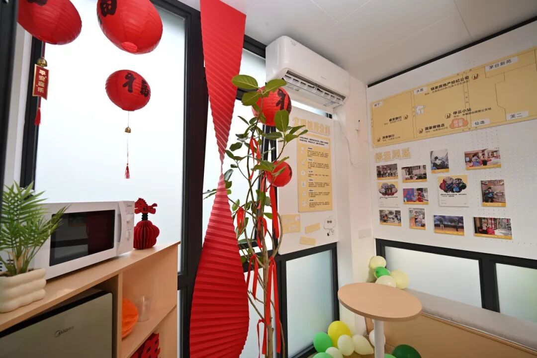 全新开放的“暖新巢”休息站,也吸引了不少户外工作者的目光,不大空间内,配备了饮水机、微波炉、急救箱、书籍和充电设备等各种设施,可谓“麻雀虽小,五脏俱全”。