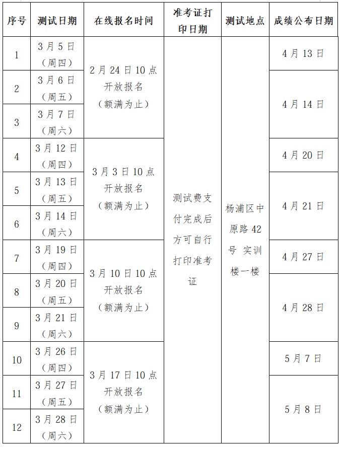 3.如因不可抗力,调整测试时间或取消测试,将及时通知考生,请考生关注。