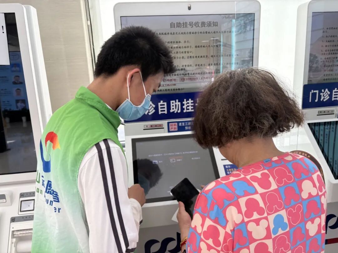 “最开始紧张又忐忑,结束时满是成就感。”这是许多学生志愿者的共同心声。初次面对患者询问时的手足无措,逐渐转变为用温和语调安抚焦虑、用清晰指引梳理流程的从容。在医院组织的系统化岗前培训和全程跟进指导下,学生志愿者们迅速掌握岗位技能,熟练协助挂号缴费、操作自助设备、指引就诊路线,工作开展得有条不紊。