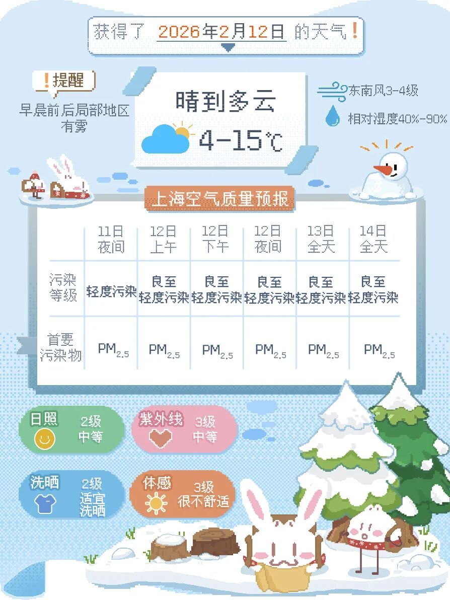 今天延续晴到多云的天气,市区早晨最低气温仅4℃左右,郊区还会更低一些。早晨前后局部地区有雾,大家出行要注意安全。白天继续回暖,相对湿度90%~40%,吹的是3~4级的东南风,最高气温可升至15℃,体感会更暖一些。