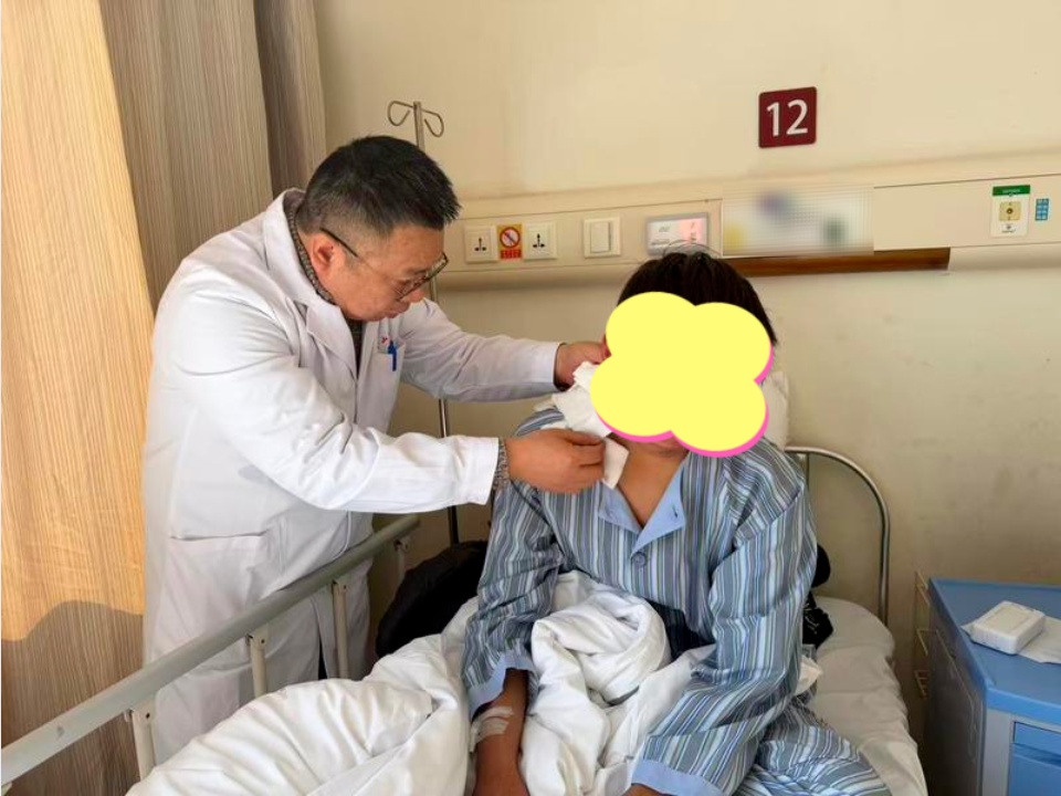 2021年,当时12岁的小扎西在家乡放牛时遭遇马熊袭击。作为高原最危险的野生动物之一,马熊牙齿和爪子极其锋利,咬合力强,给扎西造成严重的颌面复合伤。 虽经紧急救治,并先后辗转多地医院治疗,但因面神经总干断裂位置深、损伤复杂,术后仍留下右脸无法活动、眼睛不能闭合、嘴角歪斜、右耳听力丧失、一侧外耳道完全闭锁等后遗症。面容的缺陷与功能的障碍,让原本阳光的扎西陷入了长久的沉默与阴霾,出门总是戴着口罩。 今年,17岁的扎西已长成挺拔的小伙子。作为高二的学生,即将高考,也马上步入成年,面对社交乃至未来工作的多重压力,一张无法对称微笑的脸和一只几乎失聪的右耳,成为扎西走向更广阔世界的无形壁垒。在全国多次辗转后,他和家人怀着“最后一试”的决心,跨越千里来到了耳鼻咽喉头颈外科袁雅生主任的门诊。