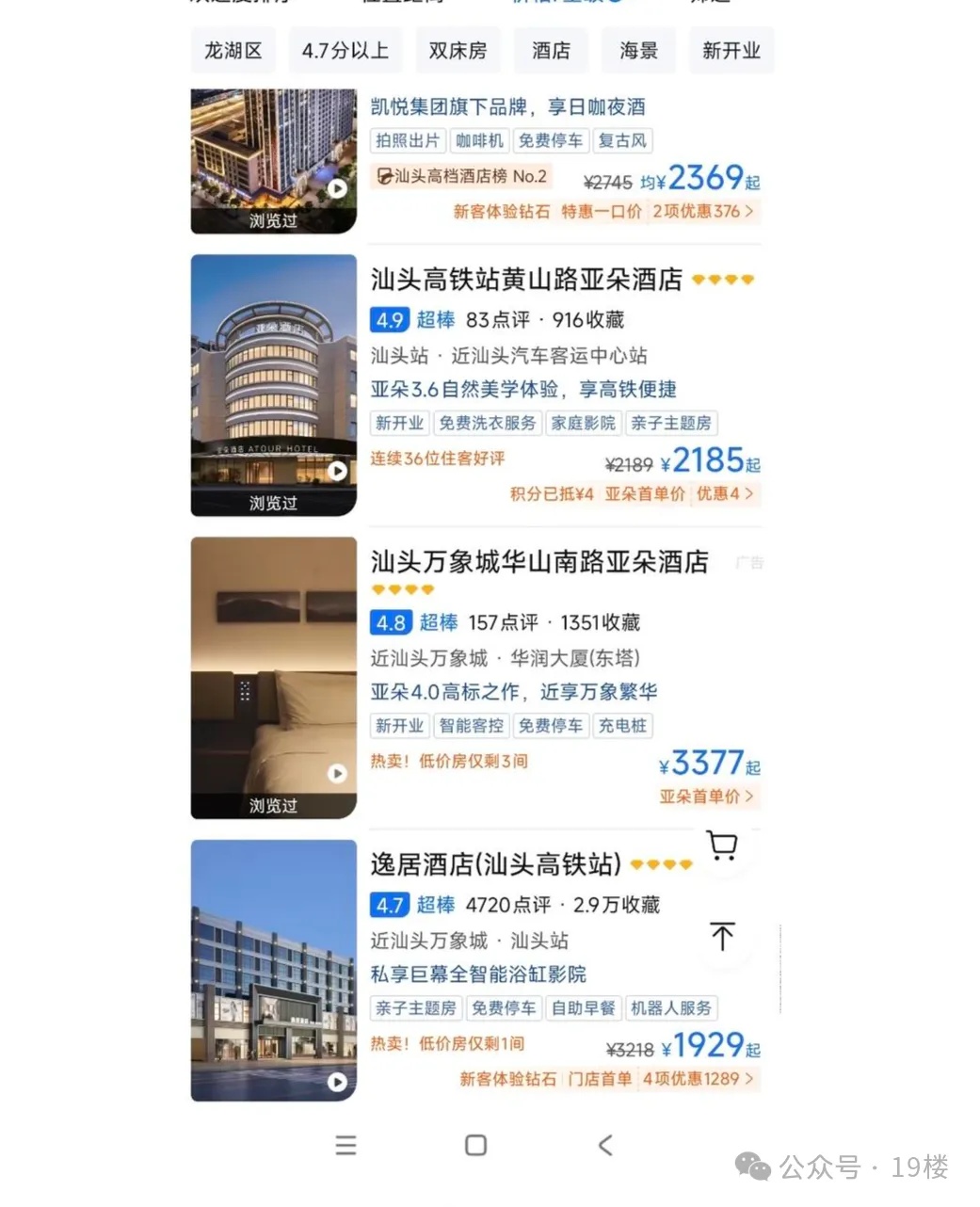 汕头部分酒店价格已超上海外滩
