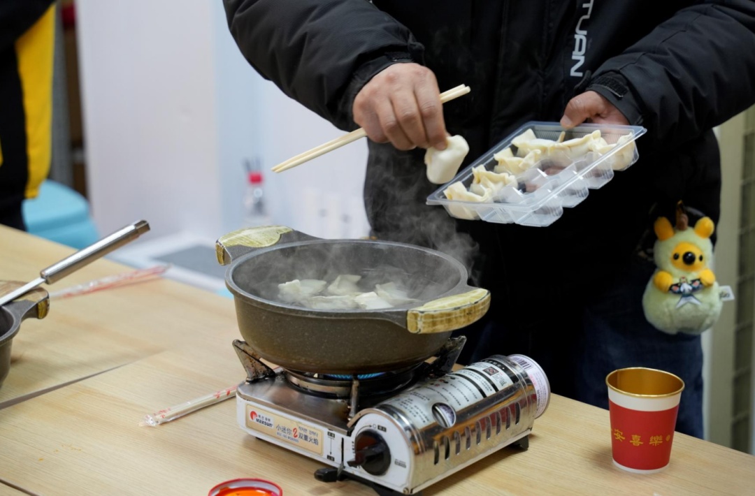“今天这儿没有‘订单已超时’,只有‘饺子已熟透’!”骑手沈琪幽默的话语,引来满堂喝彩,“平常‘骑手之家’是充电站,今天,心和胃都在这儿‘满电’了。”