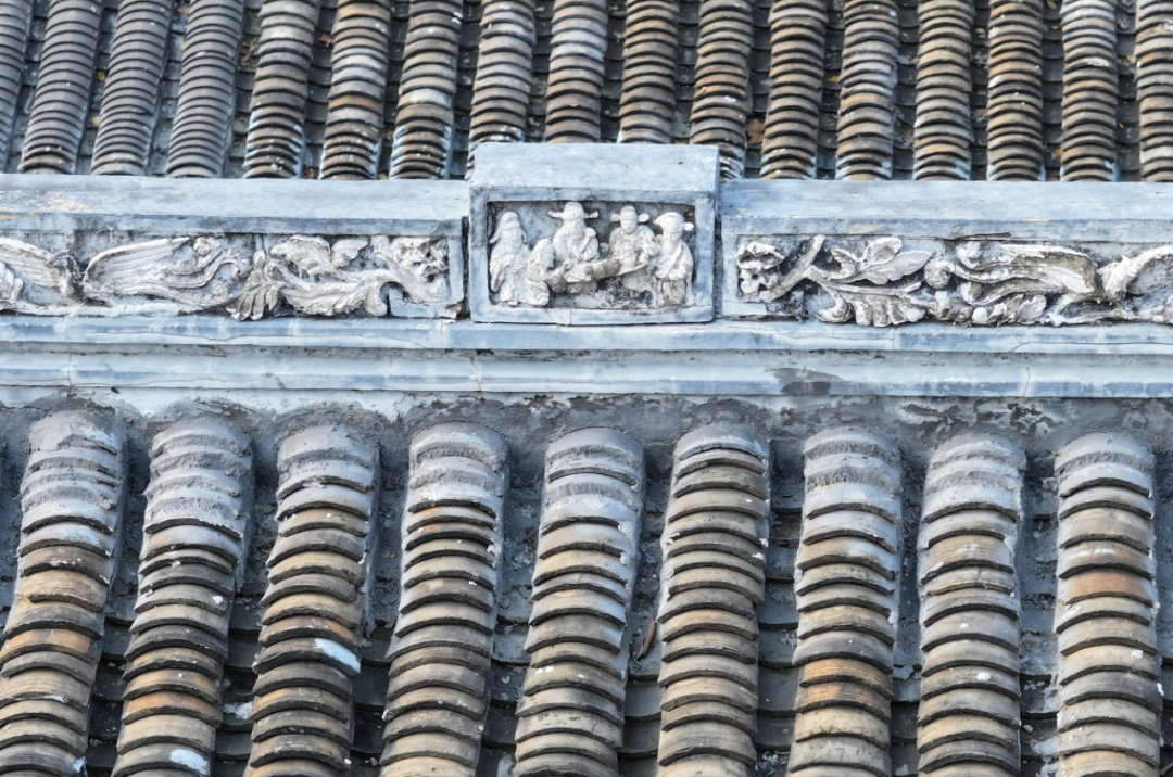 第一埭建筑为六檩前出廊硬山顶砖木结构房屋,穿插枋、檐枋、金枋、随梁枋等上有浅浮雕人物、山水、花卉图案,檐垫板、金垫板等上置斗拱。往后为后天井,东西两侧有走廊可互通前后。第二埭建筑为砖木结构硬山顶平房。
