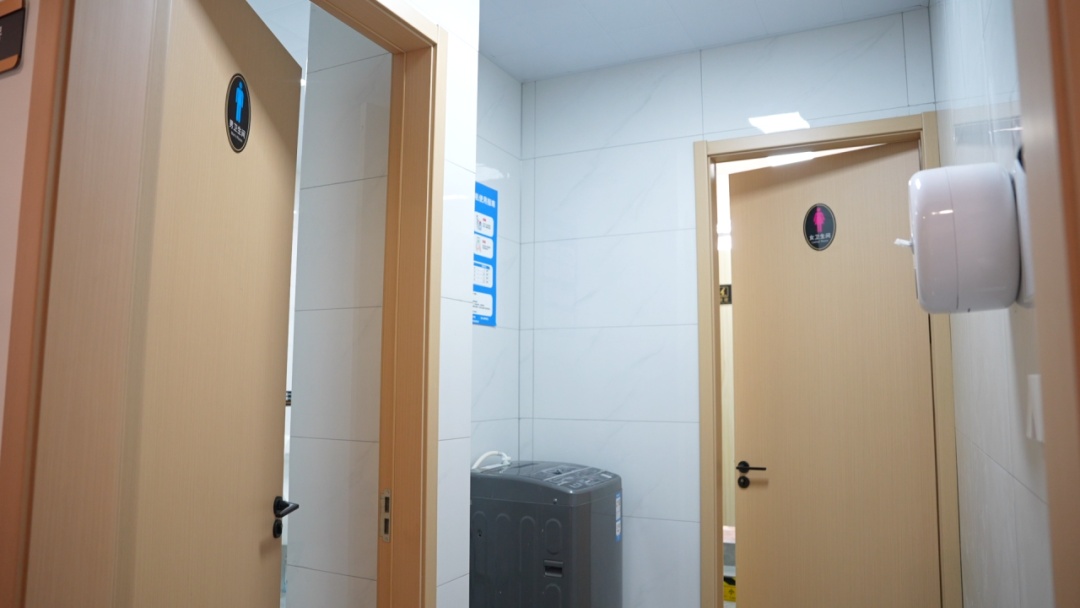 除了基础的休息、餐饮、充电等服务,卫生间有专人负责管理,保持干净整洁;还配备了自助洗衣机,方便跑长途的司机清洗衣物。