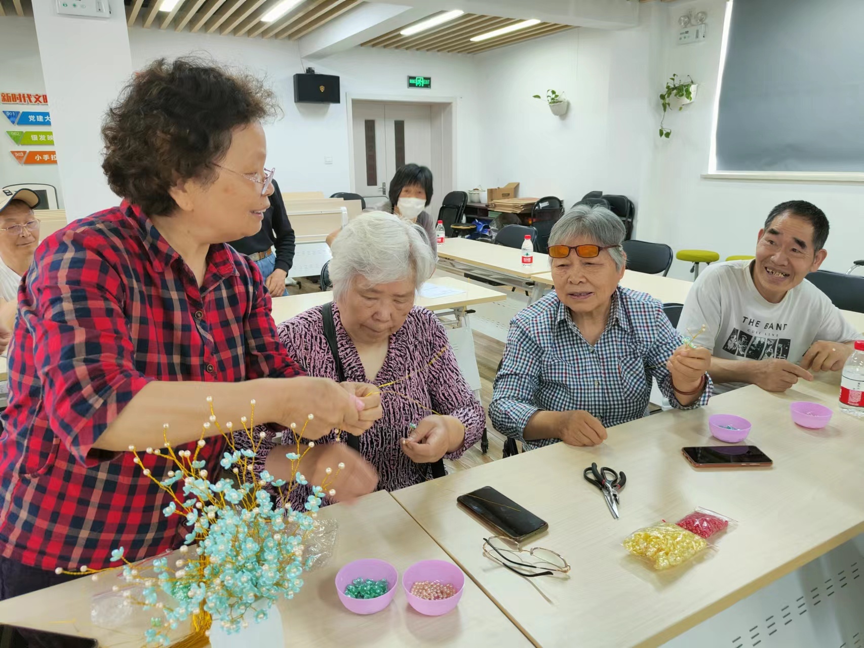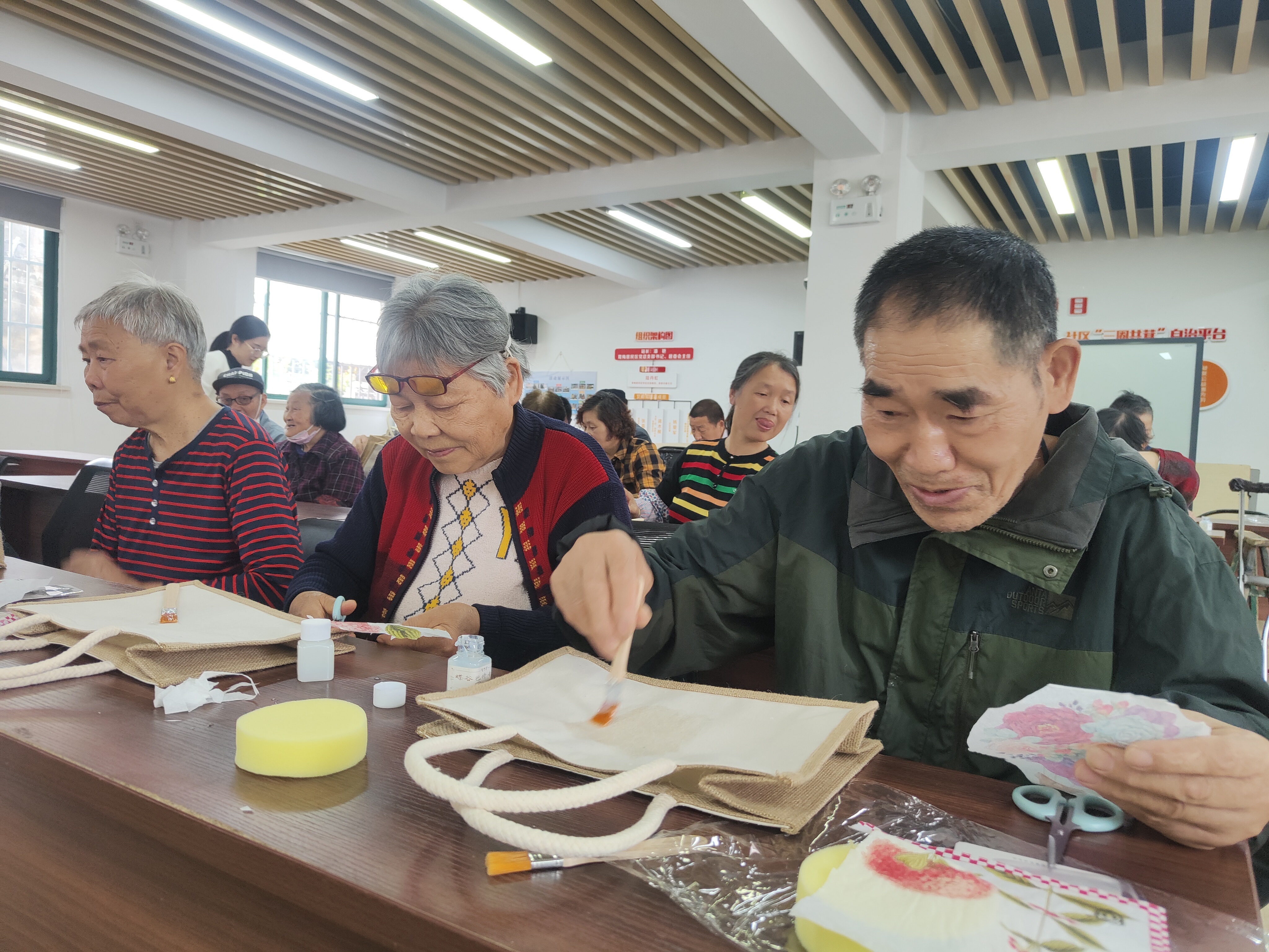 冯桂华(左一)和章瑞安(右二)及弟弟(右一)参加社区活动