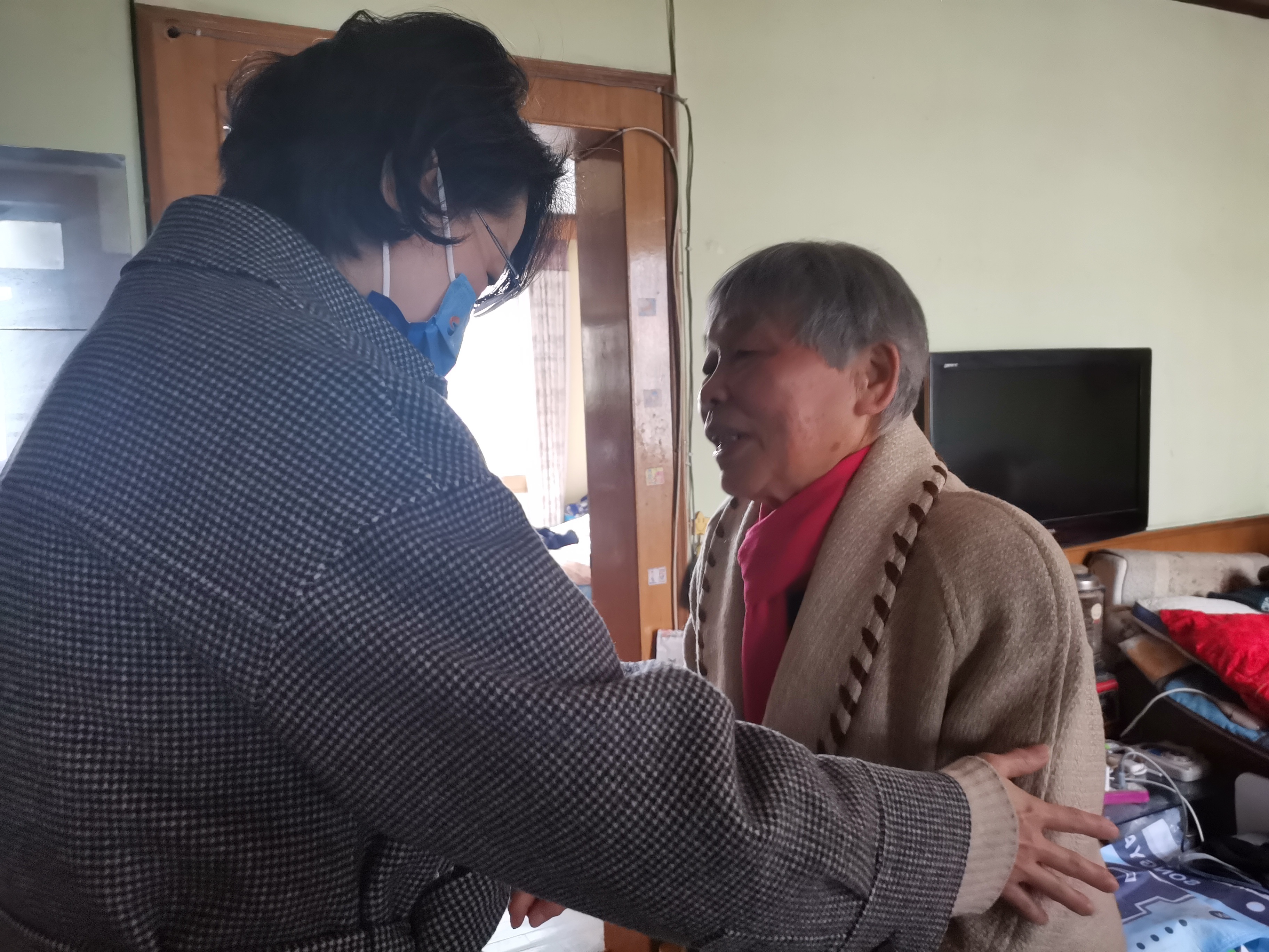 居民区党支部书记潘艳(左)上门走访