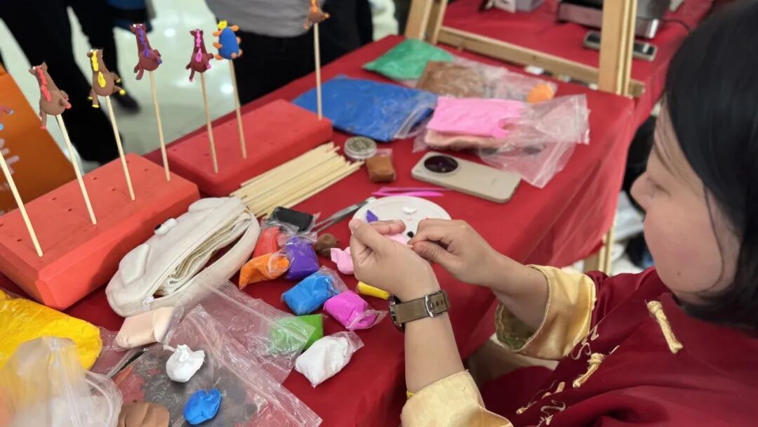 非遗民俗区堪称本次游园会的“人气担当”,传统技艺与马年生肖文化碰撞出别样火花。糖画摊位前始终人头攒动,非遗传承人手持熬得晶莹剔透的糖稀,手腕轻转、提、顿、拉之间,灵动鲜活的生肖造型便跃然板上,甜香四溢交织着童趣,大人小孩都爱不释手,争先围观品尝这份甜蜜年味。