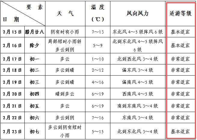 1.春节假日中期华东地区天气较好,可能出现出游高峰,建议交通、旅游等相关部门提前做好应对准备。