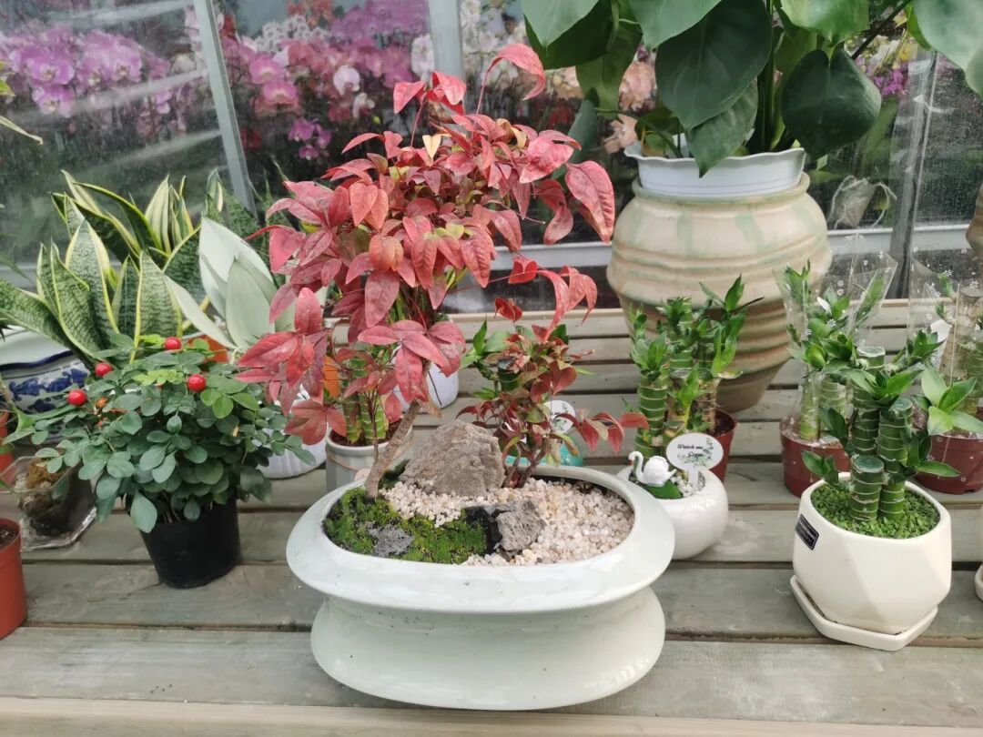观叶如南天竹、富贵竹等,宜放置在室内通风良好、光线明亮处,如其他室内花卉日常养护一样,浇水遵循“见干见湿”(即土壤干了再浇水,浇则浇透),切忌积水,以保证健康生长和延长开花(浇水过多易导致花朵早谢、果实脱落,适度控水能延长观赏期)。观花植物可每隔2-3周施一次薄肥,也有助于延长花期。