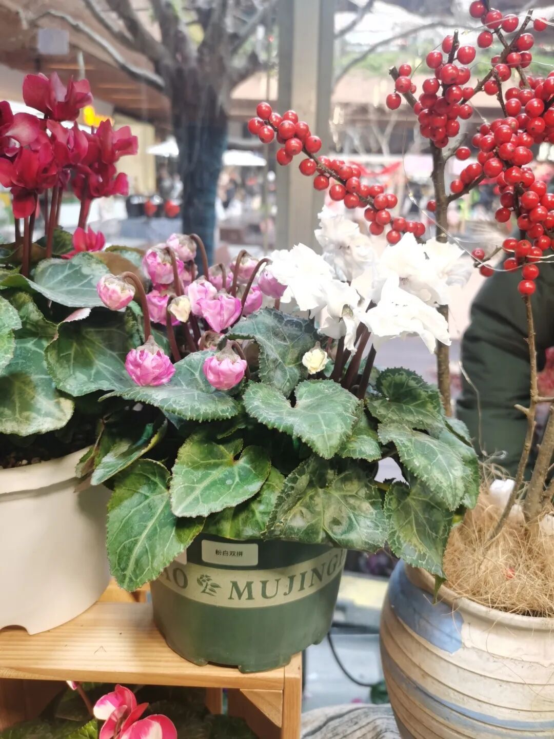观花如大花蕙兰、杜鹃、石斛兰、仙客来、长寿花、三色堇、报春、八仙花、大丽花、文心兰、铁筷子等;观果如佛手、金桔、柿子、老鸦柿、紫珠、金豆、北美冬青、柠檬、蓝莓、红萝卜、小青柠等;
