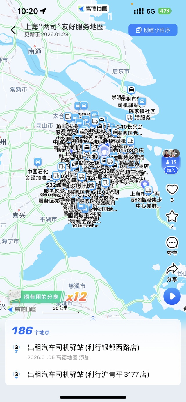 在本市各级交通主管部门、市总工会及相关企业协同推进下,该服务地图已整合上线186个服务点位,其中包含出租汽车司机驿站/网约车司机小站67个、货车司机之家12个、法律服务站点6个、工会司机之家101个,实现服务资源“一图汇聚、一键可达”。